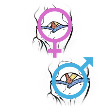 De notch waar de kruisbanden zich bevinden is kleiner en smaller bij vrouwen