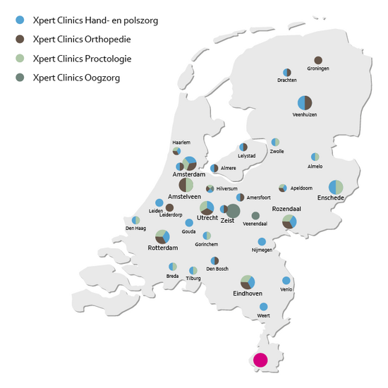 Xpert Clinics Orthopedie heeft diverse hoofdvestigingen en poliklinieken. Op onze hoofdvestigingen vinden naast de consulten, diagnostiek, therapie en controles ook alle (grotere) operaties plaats. Op de poliklinieken vinden de consulten, diagnostiek, controles en kleinere ingrepen plaats. Bekijk hier onze vestigingen.